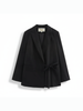 Its wrap-around design with a waist tie is not only a nod to the latest trends but also offers a flawless silhouette that flatters any figure. The timeless black color and the suit collar make it a must-have piece that effortlessly transitions from day to night. This is a true manifesto of vegan fashion and refined style, a garment that will make you feel chic, powerful, and ready to conquer the city, just like a true New Yorker. This blazer is a statement of sophisticated style that celebrates the beauty of sustainability, a hallmark of BYMANYC ® New York.
