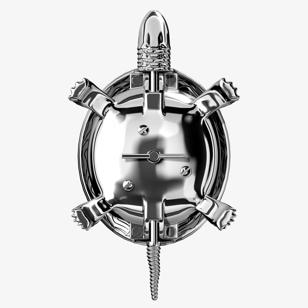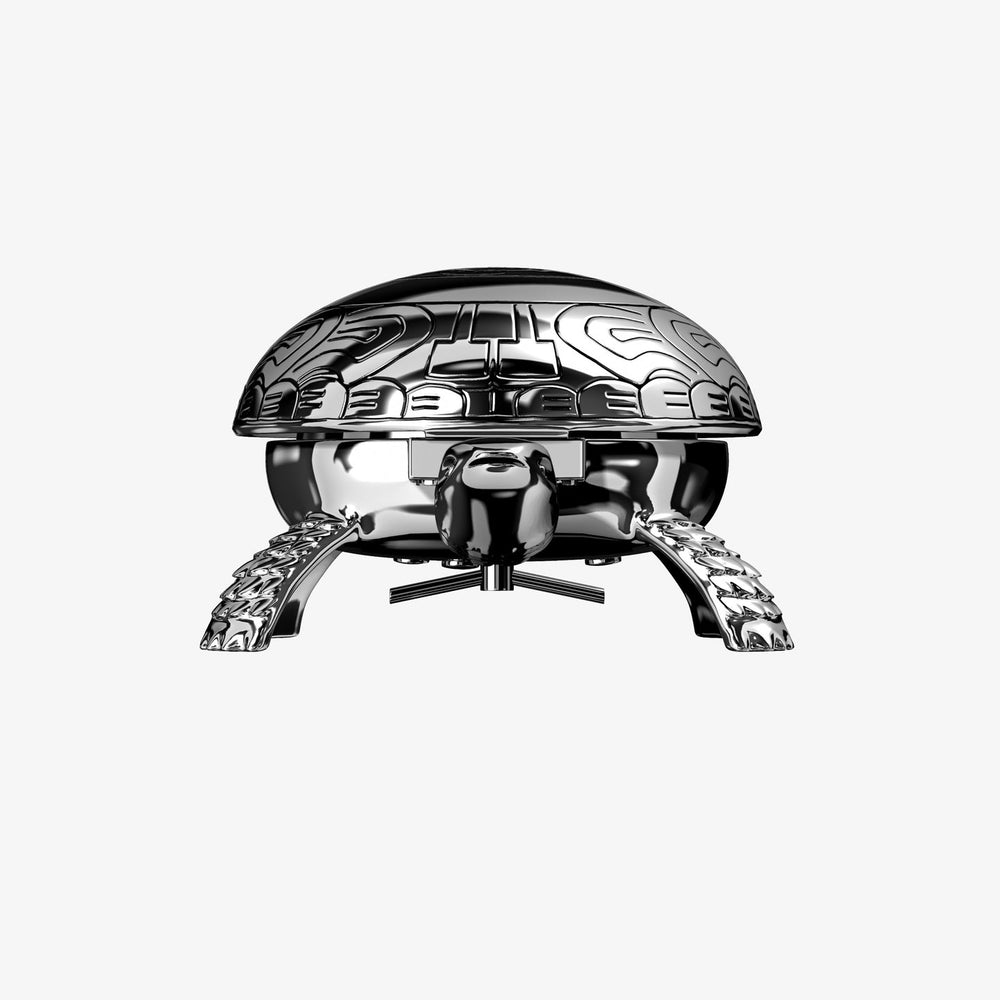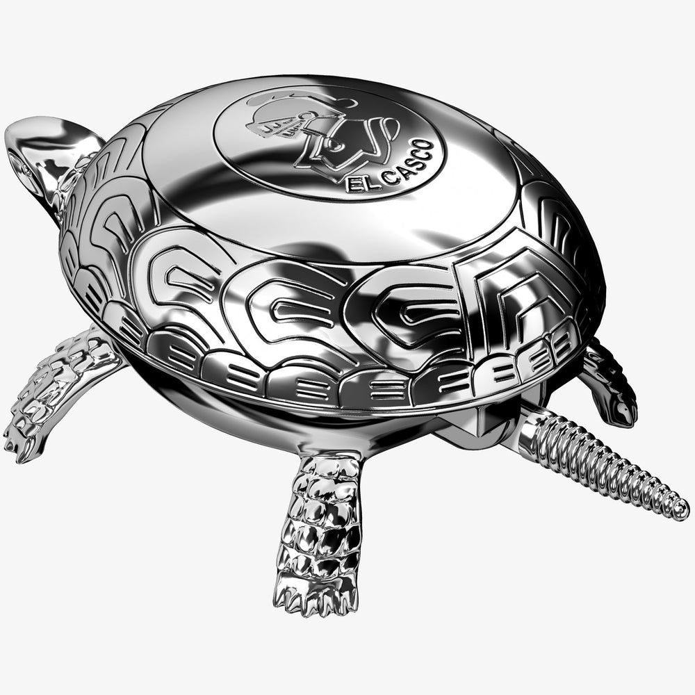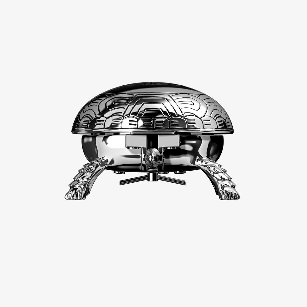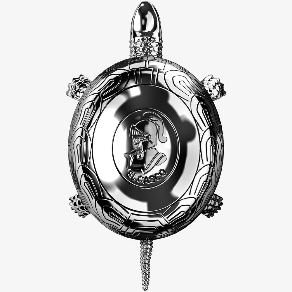 The El Casco Desktop Luck Bell Chrome 700-Ct is a unique decorative desk accessory crafted in a turtle form. Combining functionality with sculptural design, it serves both as a paperweight and a working desk bell.