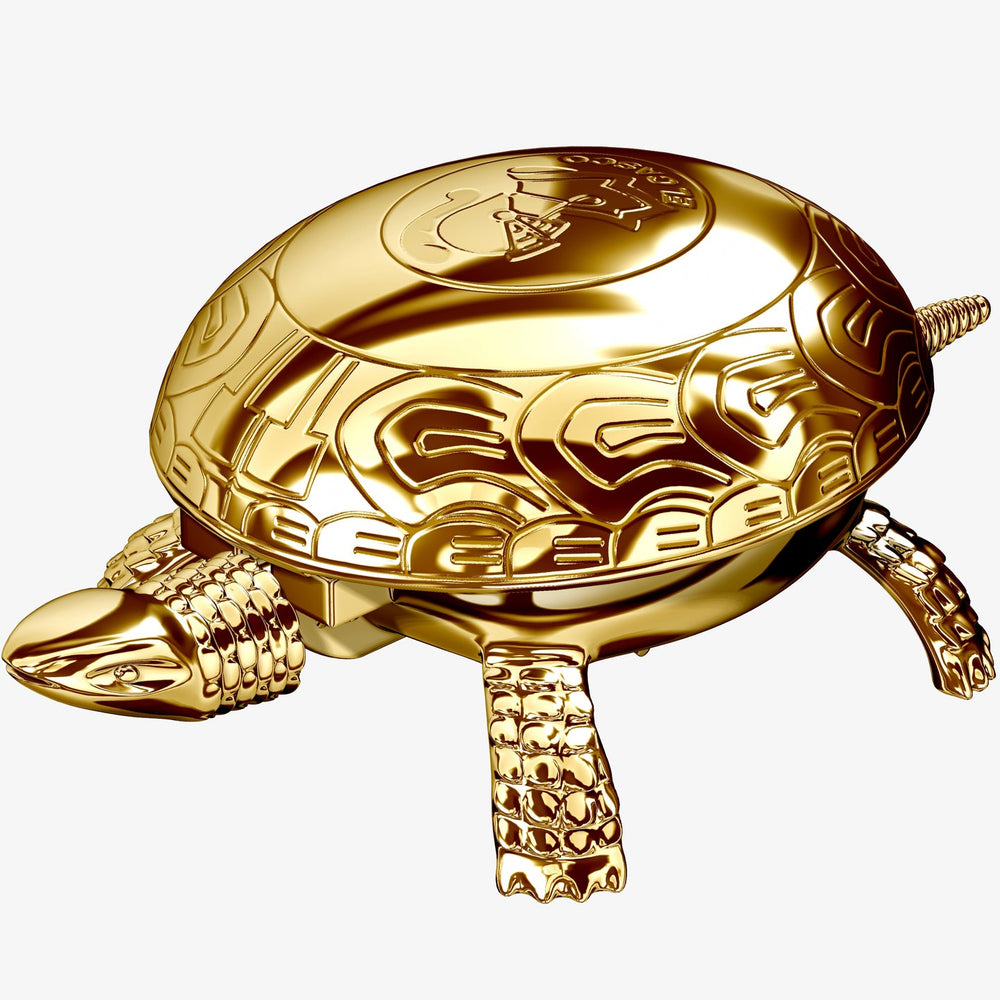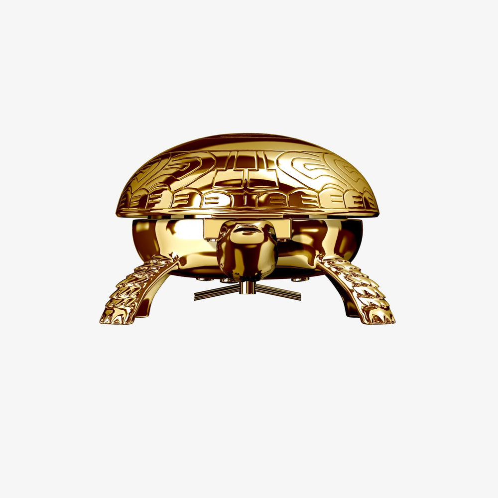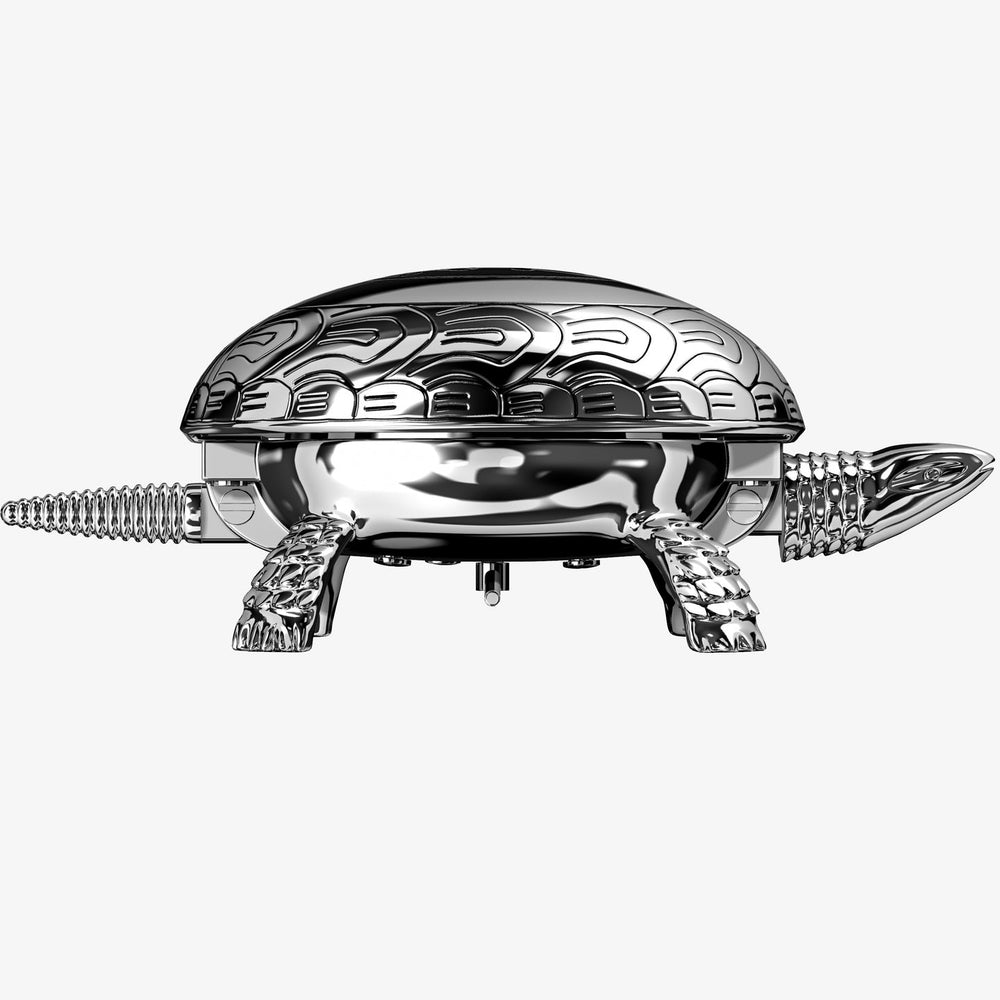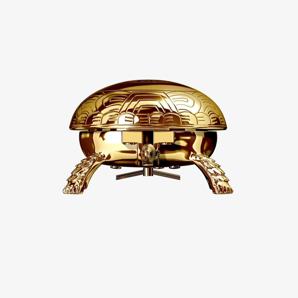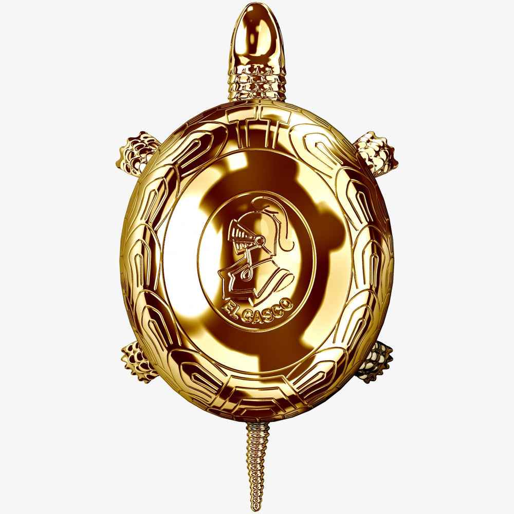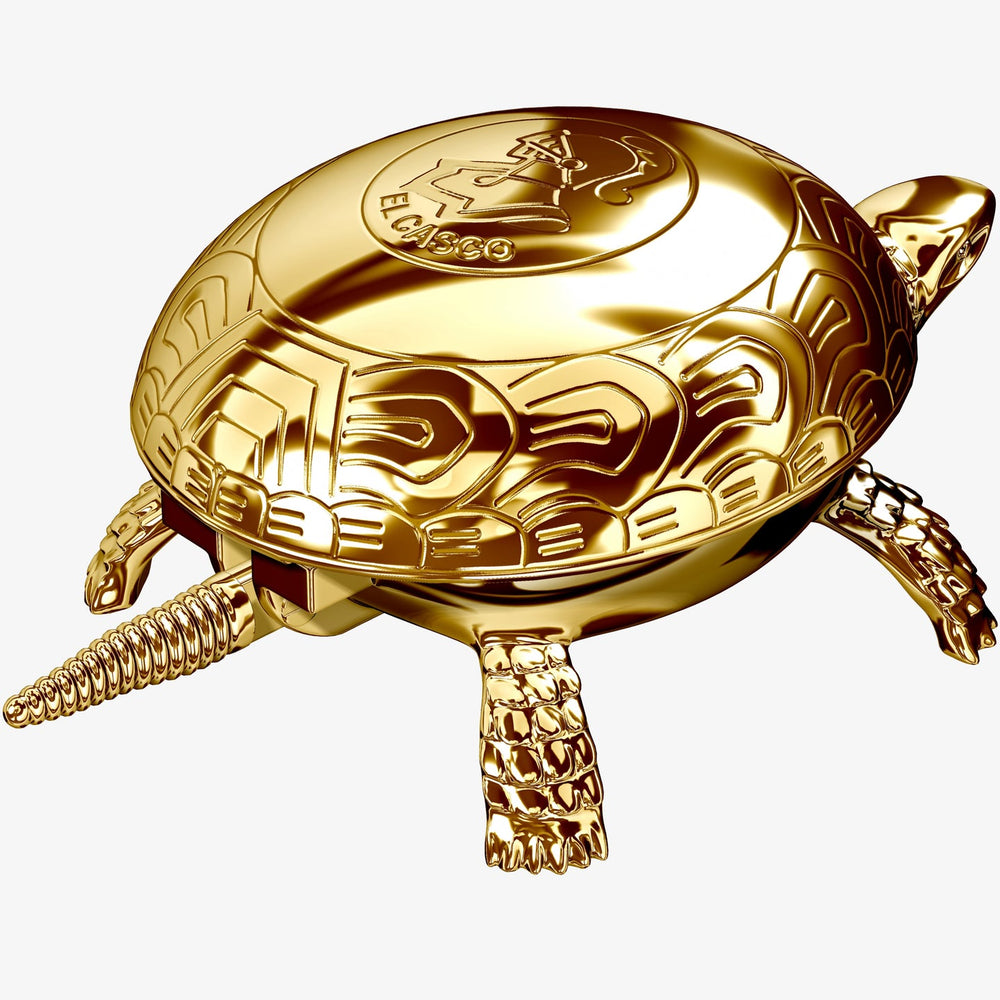 The El Casco Desktop Luck Bell Chrome 700-Ct is a unique decorative desk accessory crafted in a turtle form. Combining functionality with sculptural design, it serves both as a paperweight and a working desk bell.