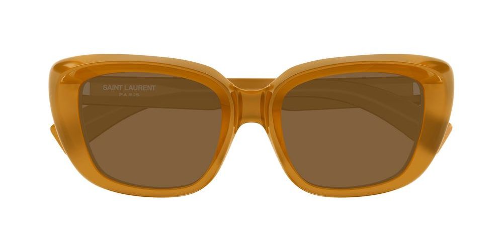 Saint Laurent SL 857 sunglasses for women beautifully blend sustainable innovation with iconic style. Crafted from recycled acetate, these cat eye frames in vibrant yellow capture a bold, contemporary spirit. The brown bio nylon lenses offer adjustable tint for personalized comfort under the sun, ensuring premium protection without compromising elegance. These sunglasses exemplify genuine craftsmanship paired with modern eco-conscious materials, making them a refined choice for the discerning wearer. Embrace a distinctive look that reflects both sophistication and environmental mindfulness. Perfect for those who value authentic design and quality, these Saint Laurent sunglasses invite you to enhance your wardrobe with lasting appeal.