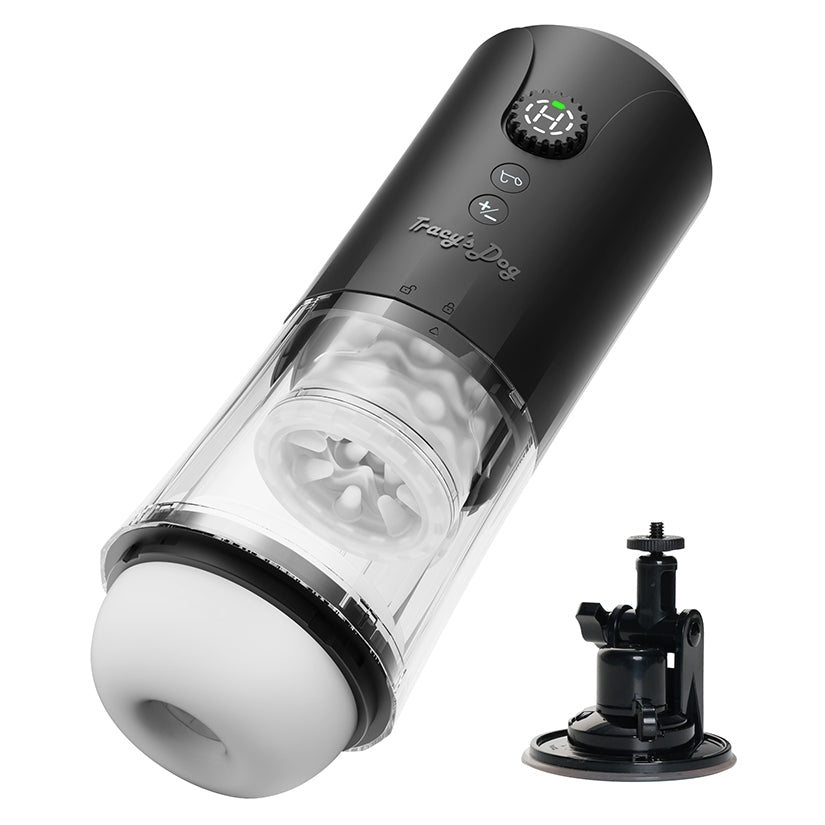 Turbothrust automatic thrusting male masturbator is easy to use for beginners and powerful for those experienced in male sex toys. Simple button interface allows you to switch on 5 deeply throbbing vibration, powerful thrusting and rotation modes simultaneously for enjoy the all-encompassing stimulation. Exclusive stepless speed change both forwards and backwards, customize your pleasure with dual-directional speed adjustment, and control for the ultimate satisfaction. Easily monitor speed and battery usage with the LCD display screen, providing real-time visibility into your toy's performance for added convenience, and enjoy a hands-free experience with the suction base. The super soft TPE sleeve is stretchy and flexible to fit most sizes. The removable sleeve makes cleaning quick and easy.