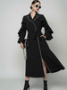 Defined Silhouette: The long, flowing cut can be worn open or cinched at the waist with the matching fabric tie belt, transforming the garment into an elegant coat dress.