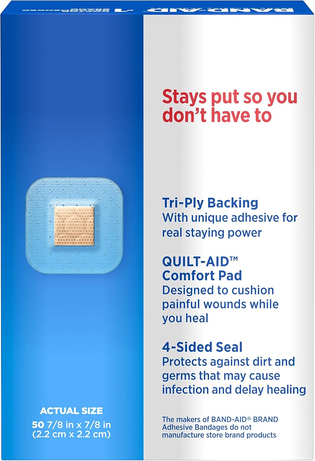 - Each bandage is equipped with a Quilt-Aid™ Comfort Pad, designed to cushion painful wounds and help prevent reinjury during healing.