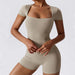 Move with confidence in our one-piece short-sleeve yoga jumpsuit, designed for performance and style. Made from high-quality nylon, this bodysuit provides breathability, quick-dry functionality, and a comfortable stretch fit to keep you supported during workouts.