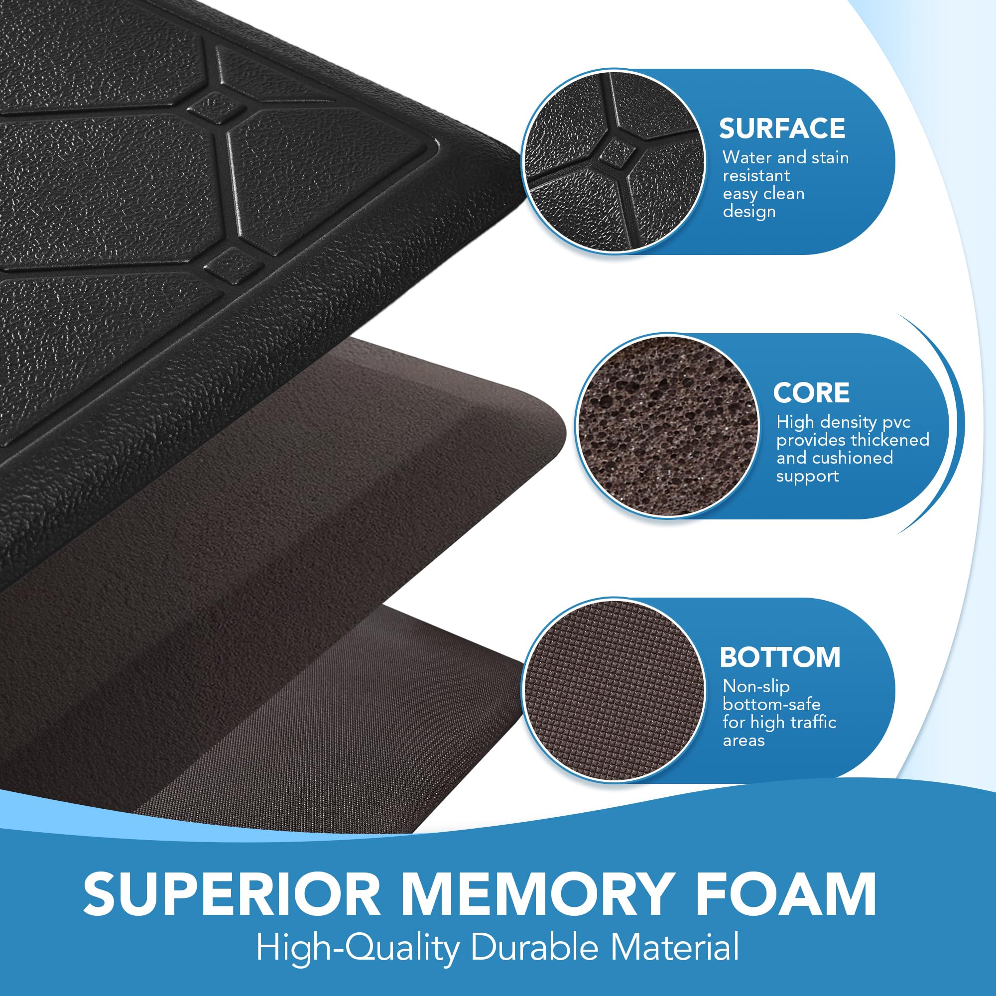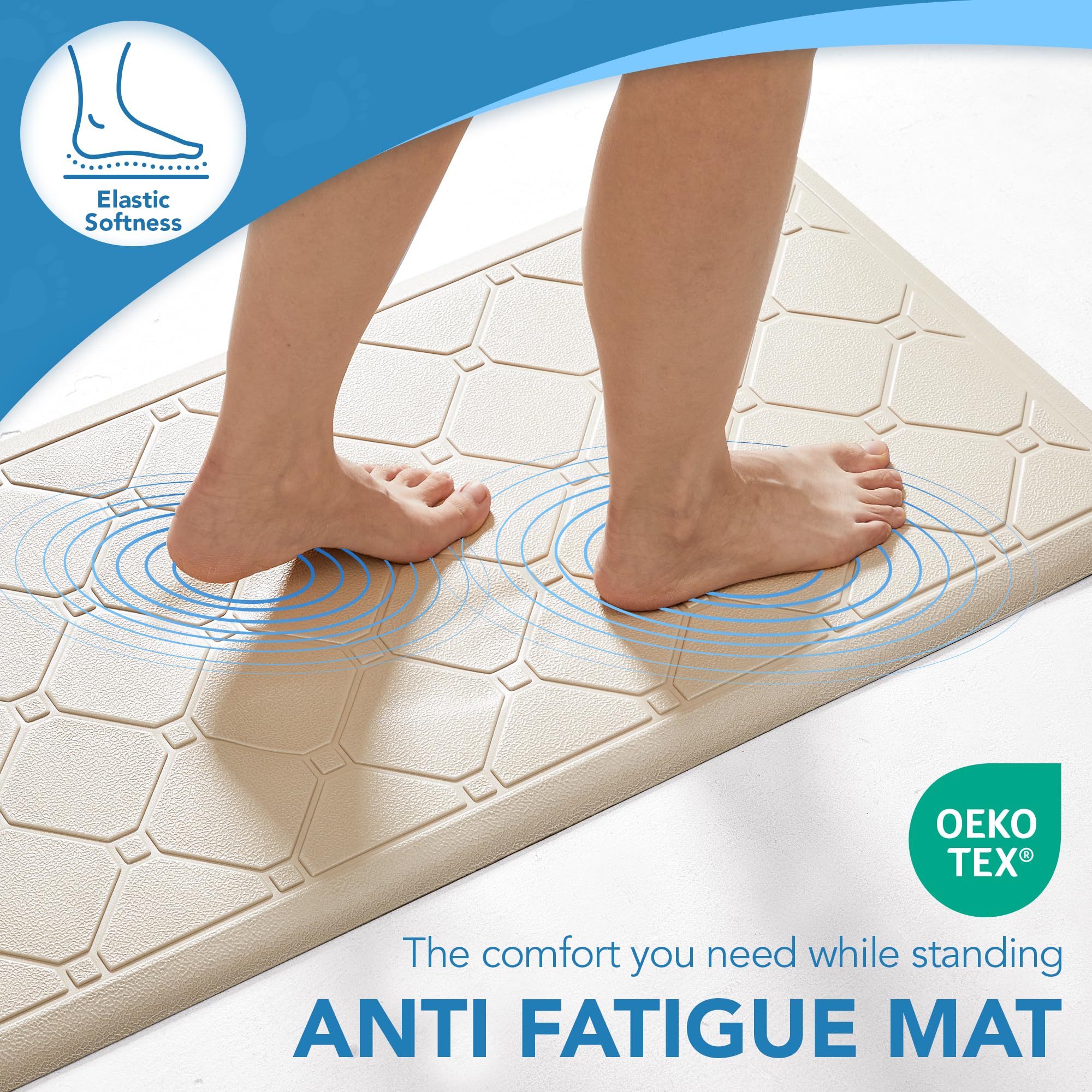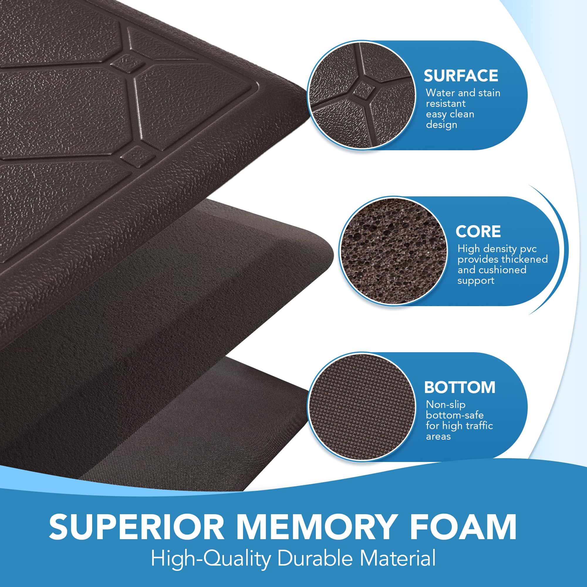 • Comfortable Anti-Fatigue Mat: Features 0.47" thick high-density PVC foam core to reduce fatigue and discomfort on feet, knees, and legs while standing.