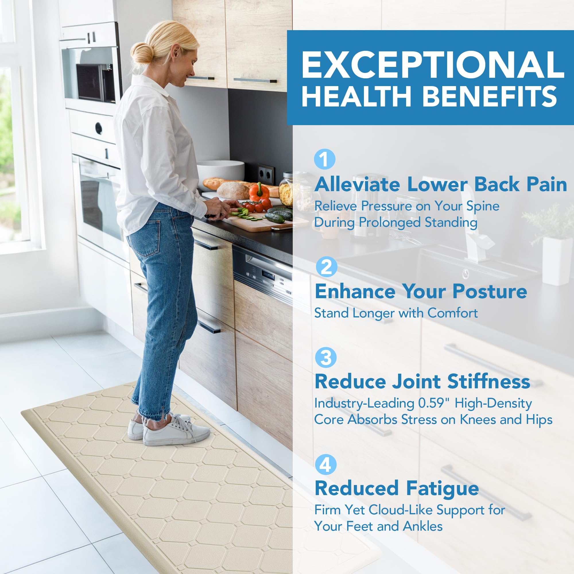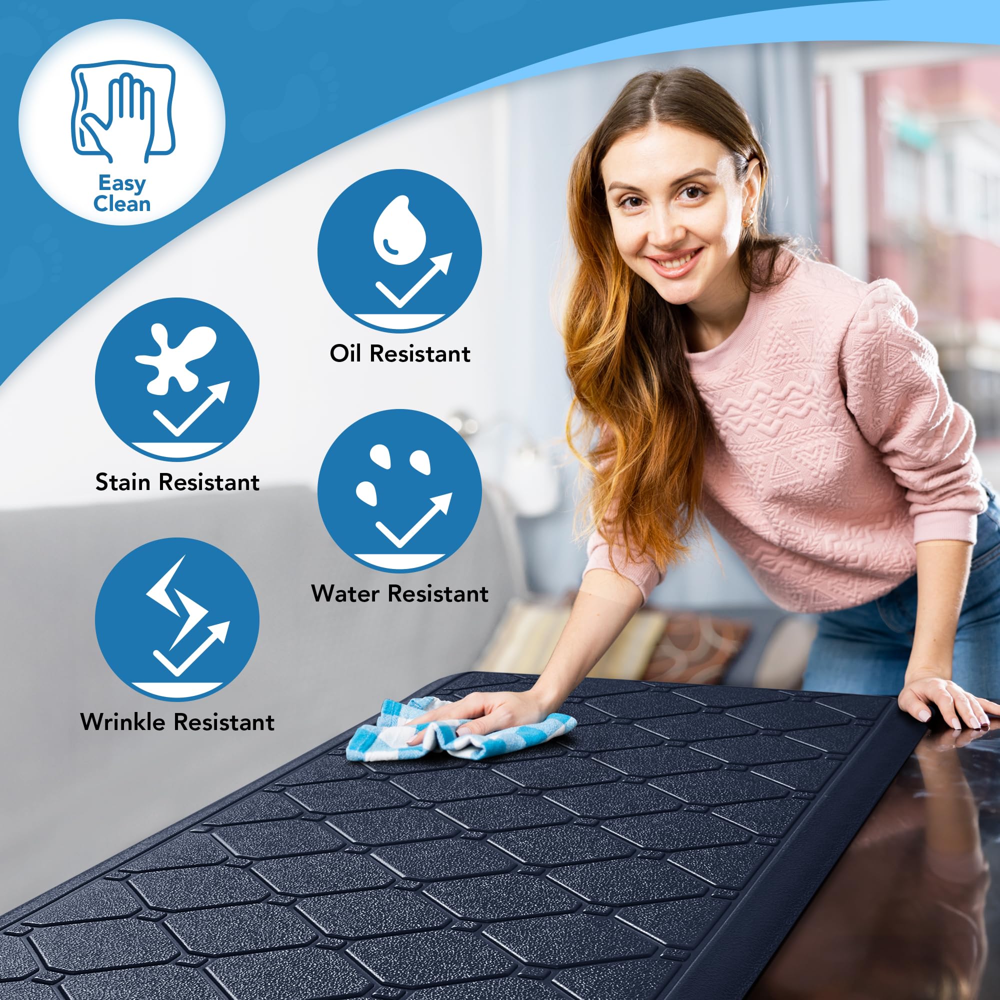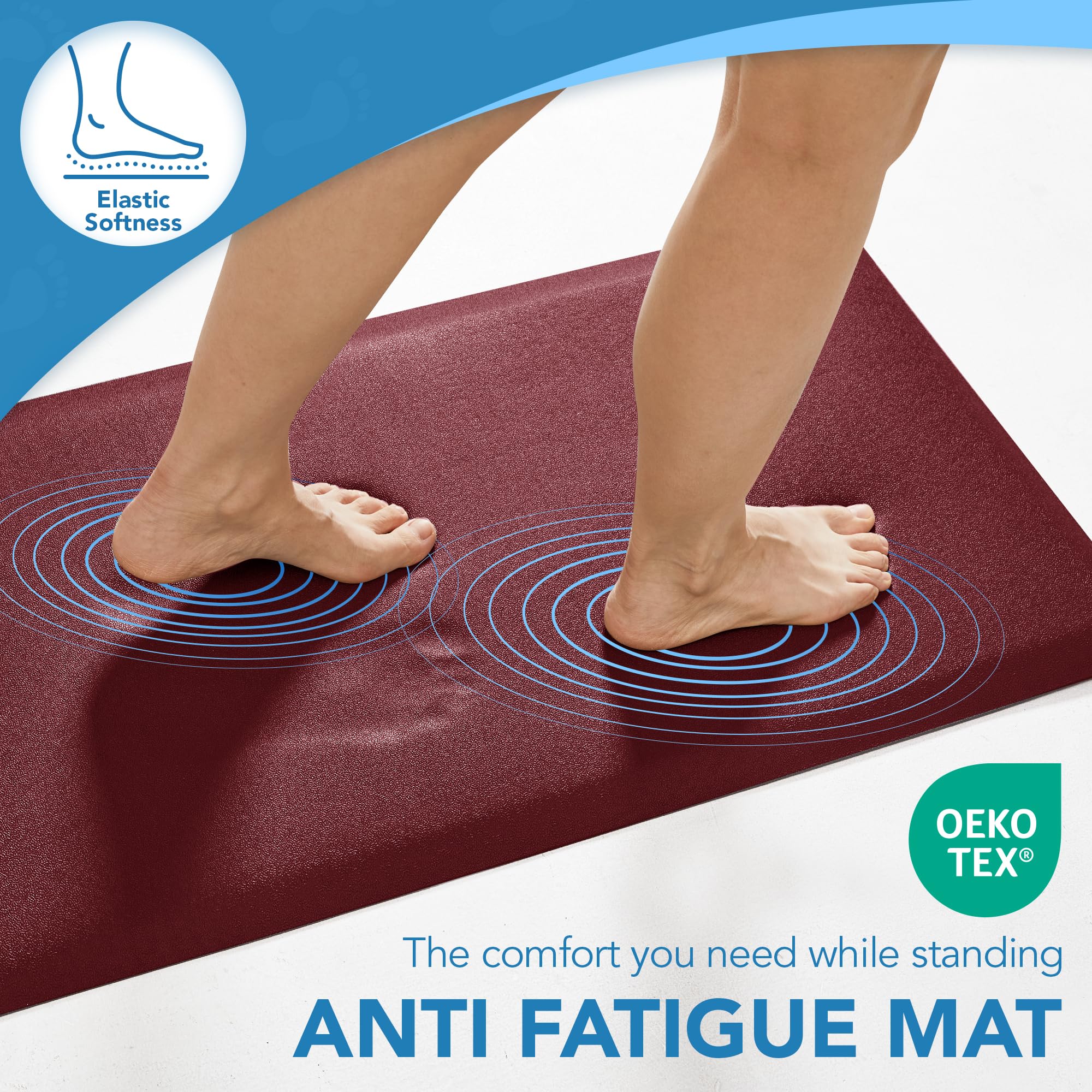 • Comfortable Anti-Fatigue Mat: Features 0.47" thick high-density PVC foam core to reduce fatigue and discomfort on feet, knees, and legs while standing.