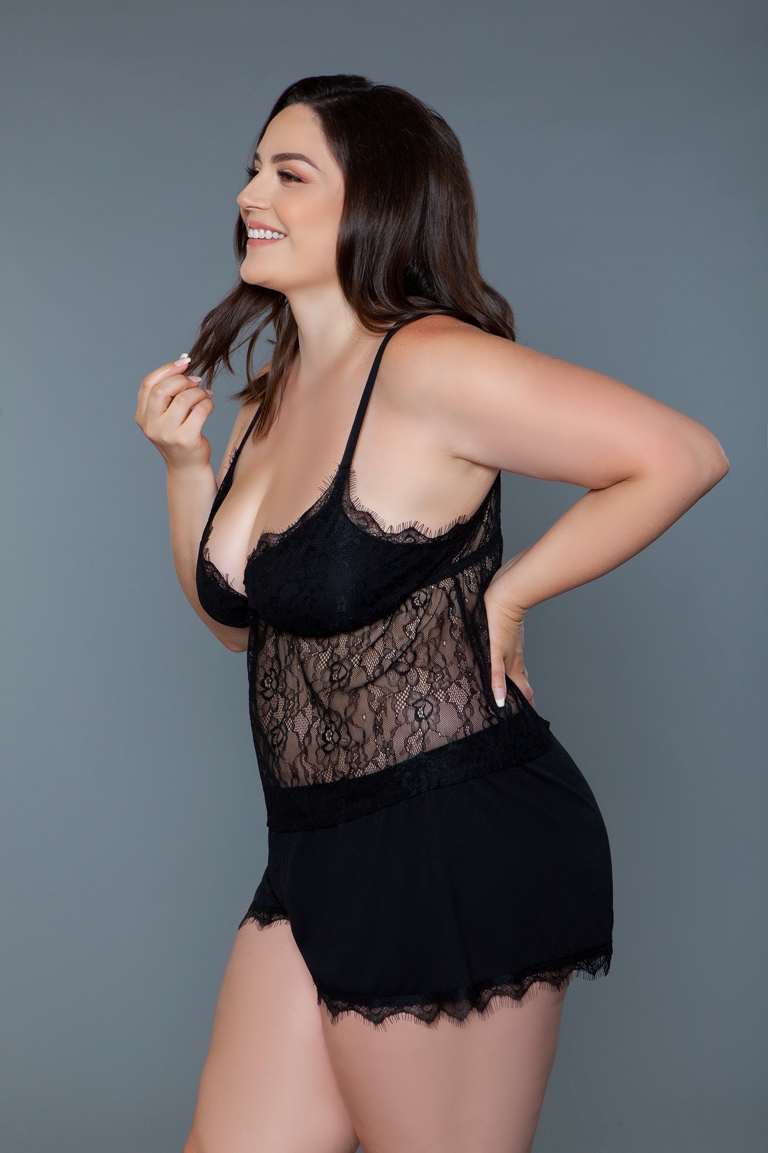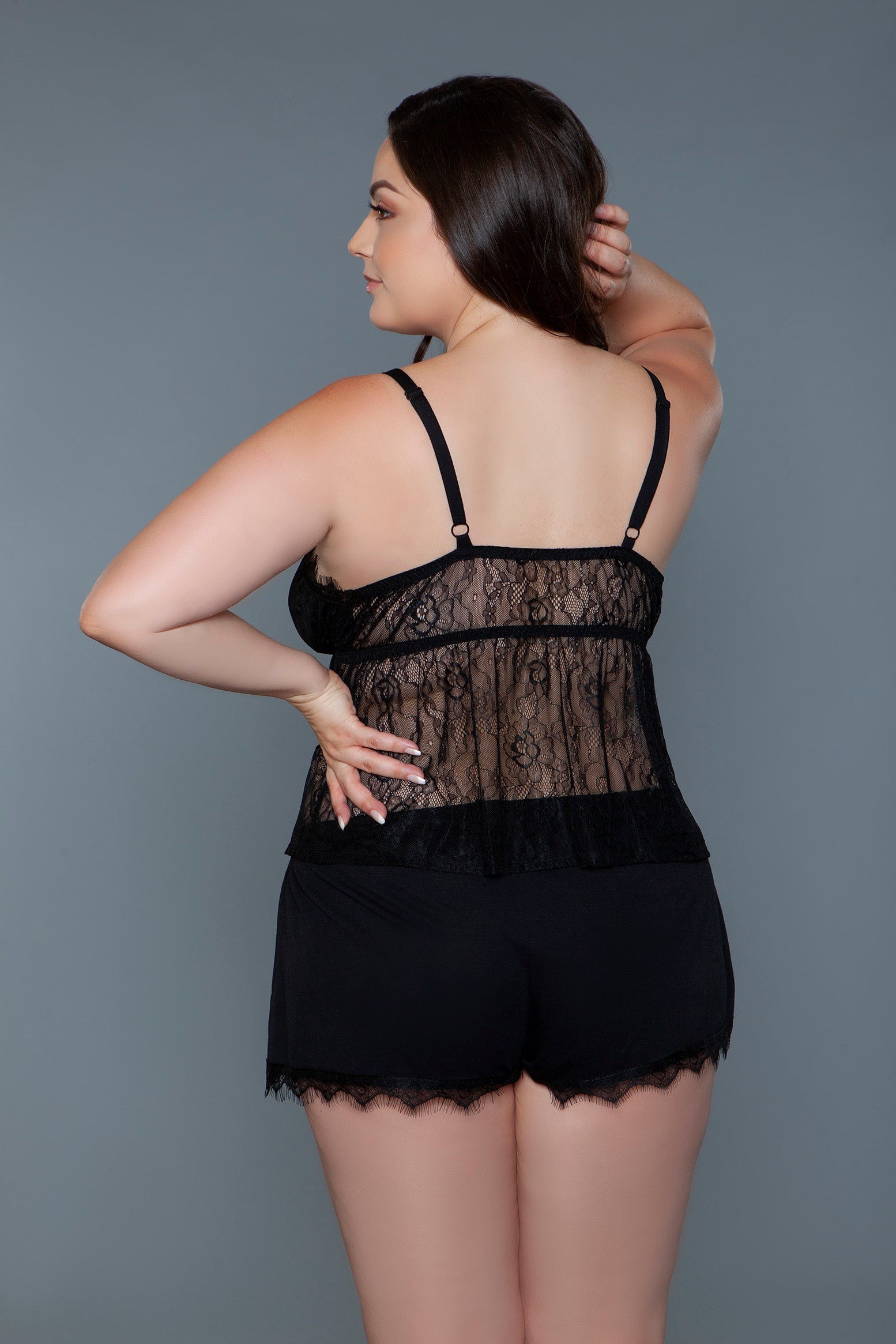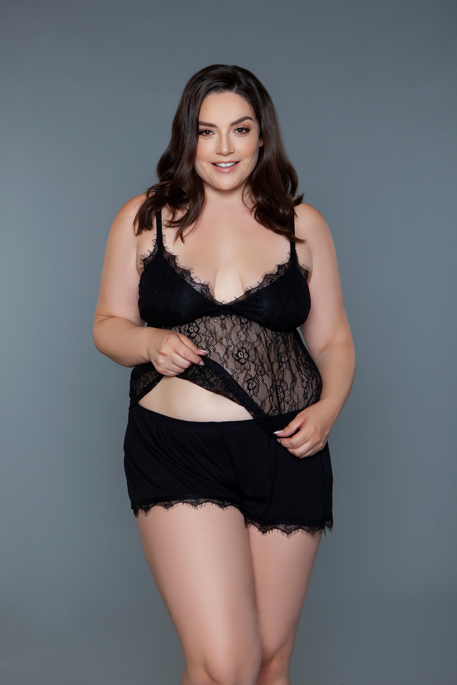 A beautifully curated ensemble that combines the timeless beauty of lace with the comfort and ease of a cami and short set. This exquisite pairing is designed to flatter and enchant, featuring soft, intricate lace that adorns both the cami and shorts, adding a layer of sophistication and allure. Lined triangle cups Adjustable spaghetti straps Elastic waist shorts Lace trim hem Knit Machine wash cold with similar colors, tumble dry low, low iron. Do not bleach. Be Wicked box packaging with Be Wicked hangtag, hygienic liner, and UPC stickers.