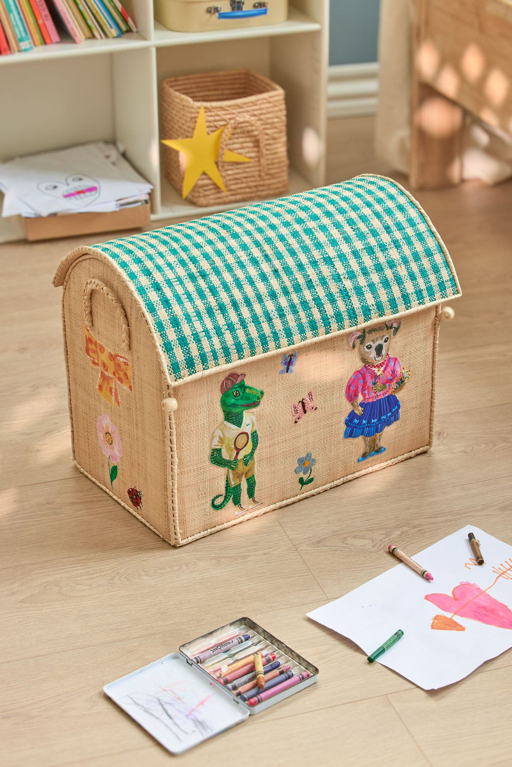 Raffia Storage Baskets Set with Animal Theme - Set of Three