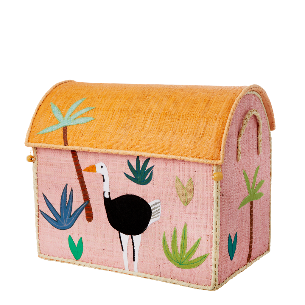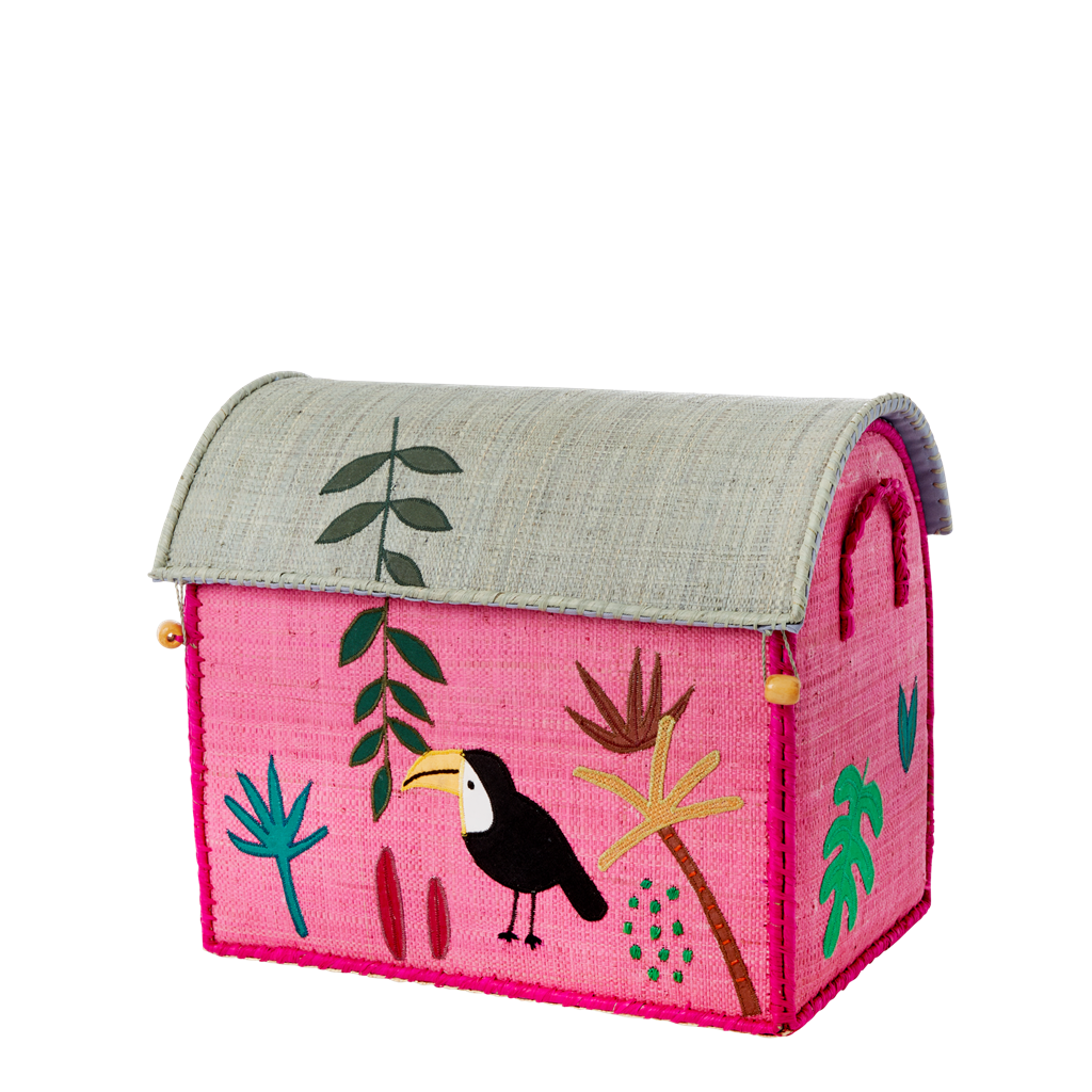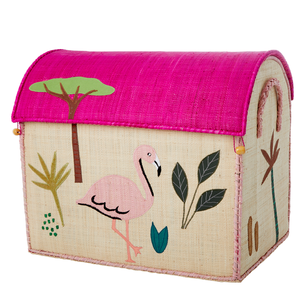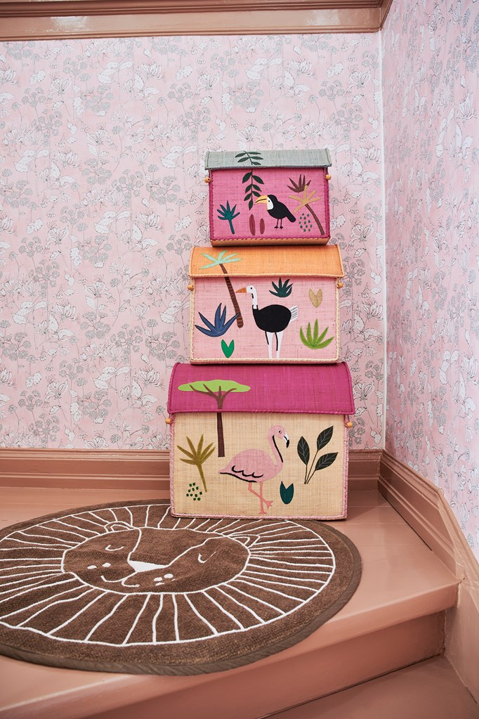 Raffia Storage Baskets with Jungle Pink Theme - Set of Three