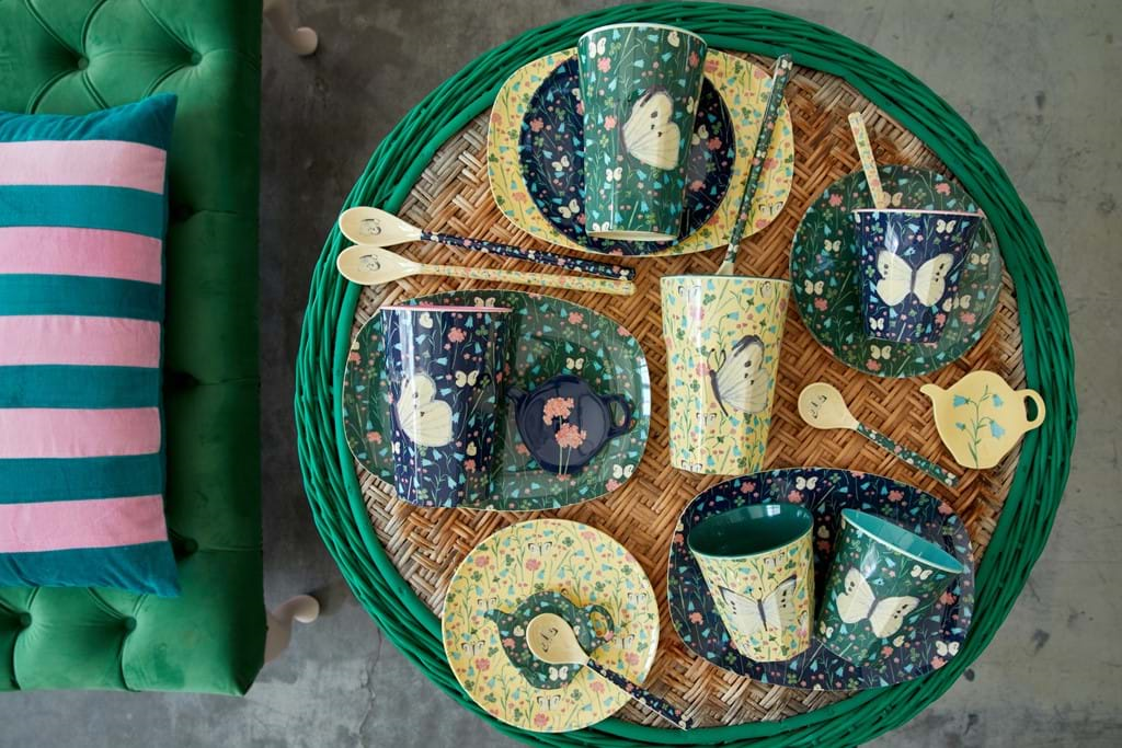 Melamine Small Rectangular Plate | Creme Sweet Butterfly Print