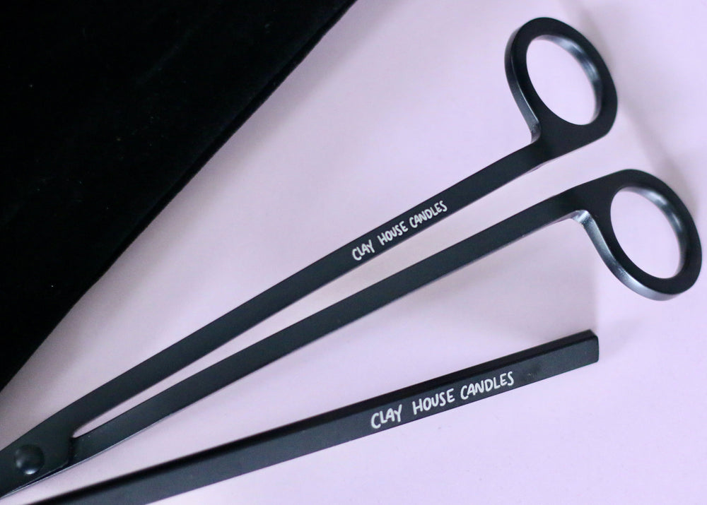 Looking for a chic way to keep your favorite candles in tip-top shape? The Clay House Candles branded wick trimmer reaches deep into our 9.5oz vessels to keep your wick trim and clean!