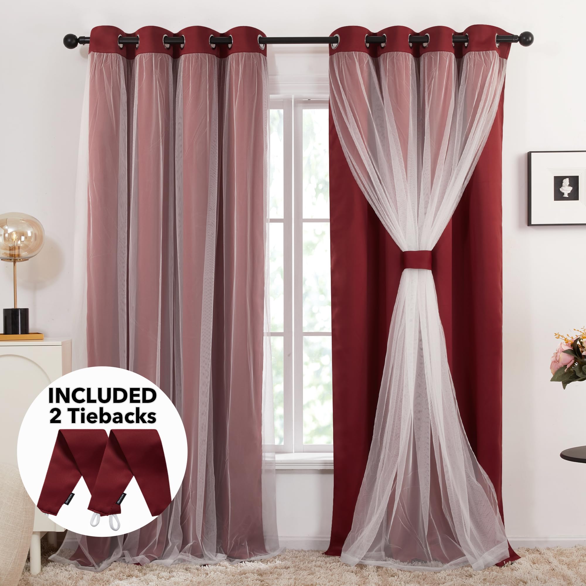 These sheer overlay blackout curtains maintain comfortable indoor temperature by blocking heat and cold air. Ideal for bedrooms, living rooms, hotels, offices, and children's rooms.
