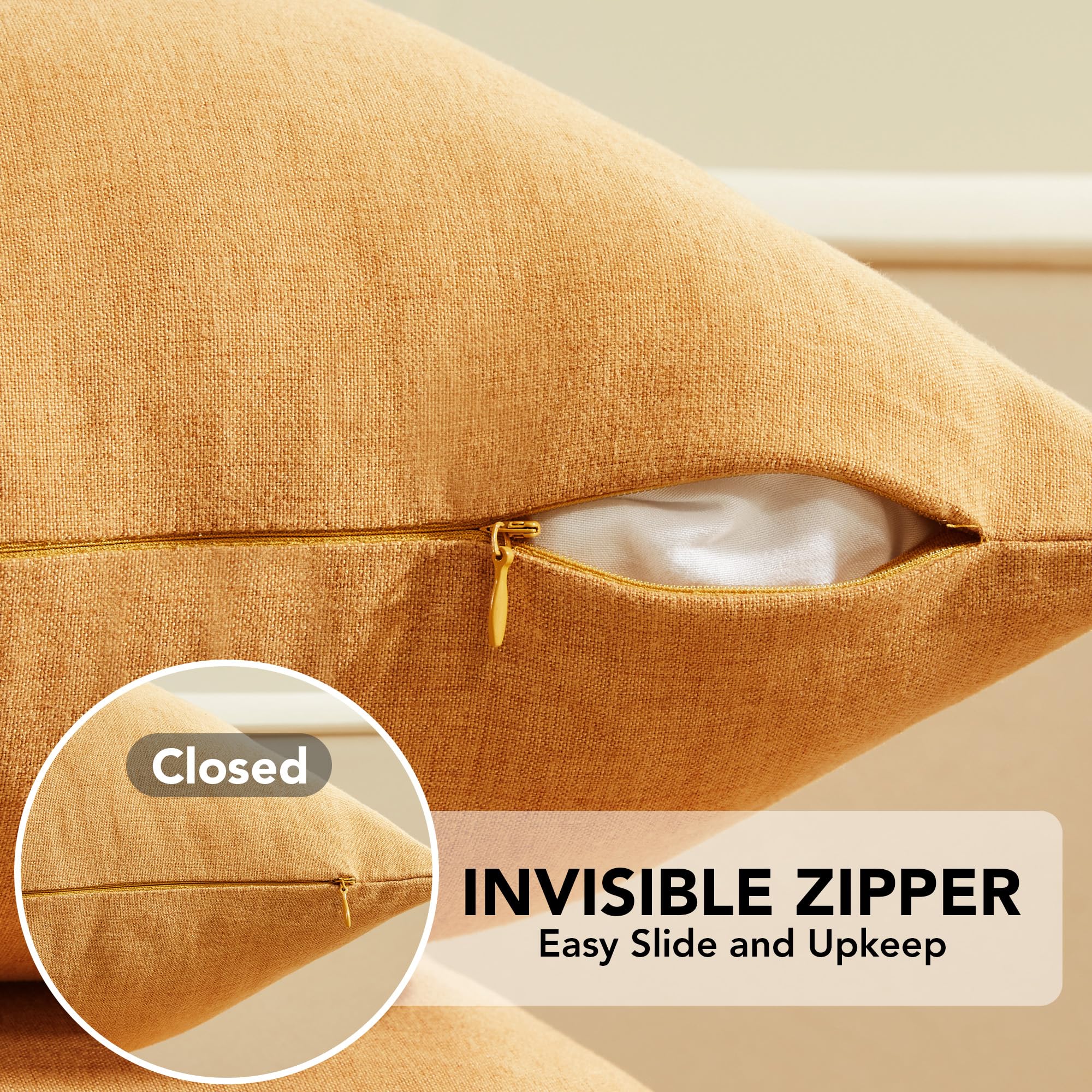 Faux Linen Pillow Covers, 16x16 Inch, Creamy White, 2PCS