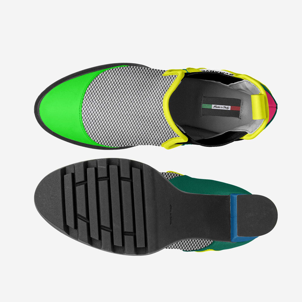 Step into effortless style with the BYMANYC ® New York Vegan Urban Elastic Boot. Expertly handcrafted in Italy using premium, 100% vegan materials, this boot seamlessly merges high fashion with everyday functionality for the conscious woman in New York City. Featuring convenient elastic side panels for a comfortable slip-on design, a chic 3.89-inch (9.9 cm) heel to elevate any look, and a durable lugged black rubber sole providing superior traction on NYC streets, this boot is your go-to for both casual outings and fashion-forward statements. The subtly embossed BYMANYC ® New York logo adds a touch of refined exclusivity, while the practical heel loop ensures a secure and easy fit.